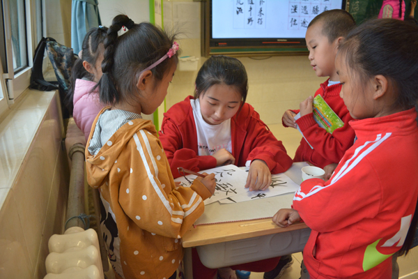 本报讯 为培养小学生学习书法的兴趣,继承和弘扬中华民族的优秀传统文化,5月8日下午,水利与环境学院青年志愿者协会的成员们走进卧龙小学开展志愿服务活动。