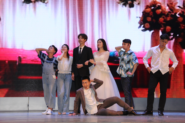 本报讯 6月3日晚7点,文学院青笋剧团2019年度话剧《恋爱的犀牛》在校大礼堂公演。校党委学生工作部、文学院负责同志及全校1000余名学生到场观看演出。