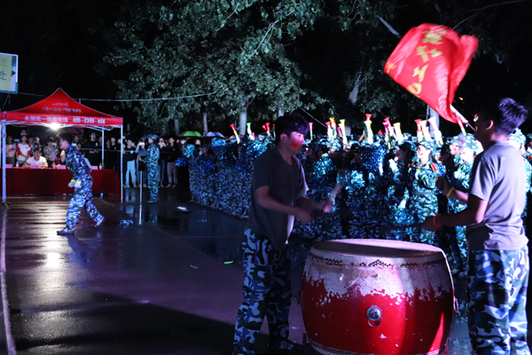 11日,决赛开始进行。天空飘着小雨,但雨水并没有减弱同学们的激情。雨水滴落,队员的情绪却依然高昂;天空阴沉,队员的声音却仍然嘹亮。骤雨般急促的鼓点,雷鸣般响亮的声音,队员头上青筋暴起,摇旗手咬牙坚持。最后在热烈的欢呼声中,信息科学与工程学院夺得桂冠,水利与环境学院和物理科学与技术学院分获亚季军。