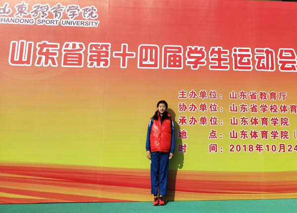 橙黄橘绿,晚风微拂。稀稀落落的星星点缀着紫红色的画布,嗅着咖啡醇厚微苦的香气,笔者有幸采访到了“山东省大学生田径锦标赛甲组跳高冠军”—蒋谨忆。未见到蒋谨忆本人前,笔者以为她是腼腆害羞,不善言辞的。见到本人后,笔者却被她阳光开朗的笑容深深感染,她的活泼健谈让笔者紧张的心情得以放松,与她短短一个小时的交谈也让笔者受益匪浅。