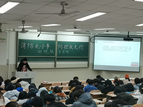 本报讯 为进一步增强同学们消防安全教育意识,11月21日晚上七点,水利与环境学院携手外国语学院、信息科学与工程学院、机械工程学院于第十一教学楼5段101教室共同举办“消防无小事,防控我先行”消防安全知识专题讲座。