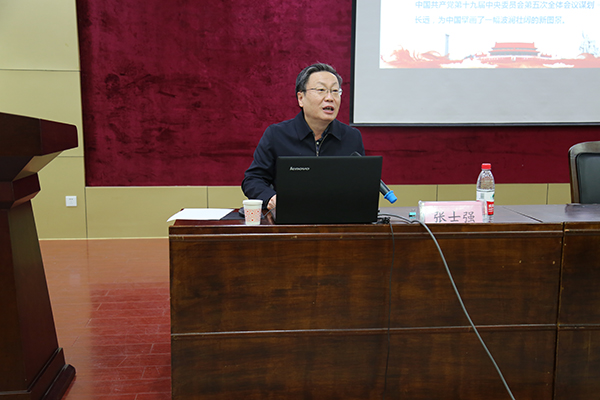 张士强校长从深入学习领会党的十九届五中全会精神、回顾学校“十三五”期间取得的成绩和“十四五”时期发展的思考三个方面作宣讲报告。