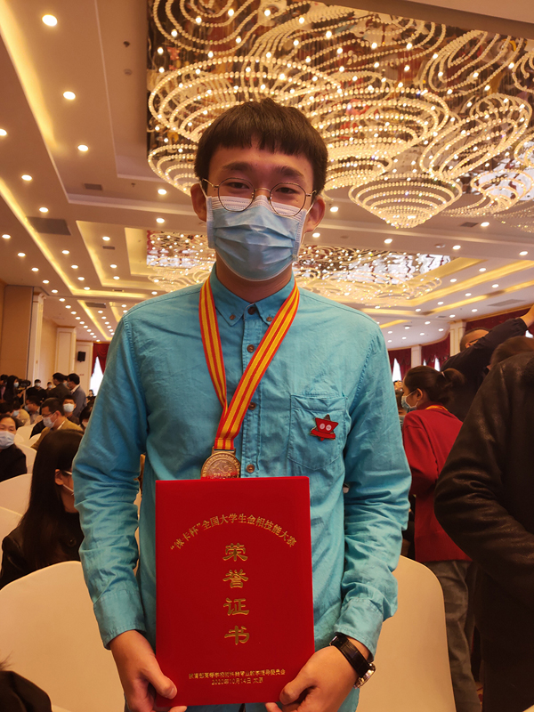 这次比赛地点设在了山西太原,三位同学是代表学校参加的,他们身上有着很强的集体荣誉感。董旭回忆到,到达比赛场地之后,他们做的的第一件事,就是在所有参赛学校的校徽里寻找济南大学的校徽。找到之后,三人站定与校徽合了张影,在路遥马急的日子里,这张照片承载了太多回忆,关于友情,关于奋斗。回忆起当时的情形,董旭脸上带着笑容,还跟笔者分享了一路上的风景,就算是谈及比赛过程,他并没有流露出过多的紧张感。董旭谈到,在正式的比赛现场,他们遇到了很多优秀的对手,但是三人丝毫不怯场,凭借着充分的准备和良好的心态相互扶持并且一路过关斩将。在谈及遗憾时,董旭同学有些唏嘘,觉得确实有遗憾存在,他对自己的期望很高,希望自己能够做得更好。