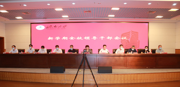 本报讯 8月26日,学校在第一学术报告厅召开新学期全校领导干部会议。校领导、全体处级干部在主会场参会,全体科级干部、辅导员通过线上参会。会议由党委书记刘春华主持,校长刘宗明对学校相关工作进行了总结和部署。