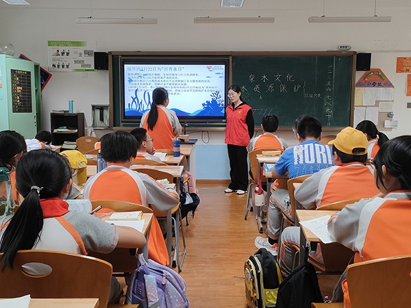 本报讯 为拓展自身知识面,扩大与社会的接触面,宣传保护泉水和垃圾分类知识,数学科学学院青年志愿者协会于4月18日下午来到基础教育集团(舜文)开展第四次宣讲活动。该活动由学校团委和基础教育中心共同筹办,旨在引导学生们树牢“人与自然和谐共生”理念,形成“爱护环境,垃圾分类”的意识。